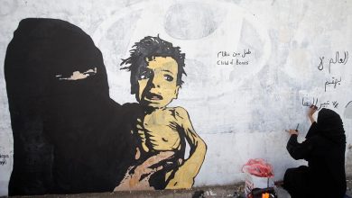 عبر جداريات بالشوارع.. أطفال اليمن الجوعى يحدقون في سكان صنعاء