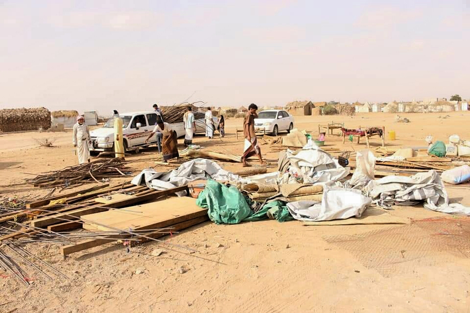 عائلات يمنية في العراء .. بعد فرارها من المعارك في بلدة “عبس” شمال غرب اليمن