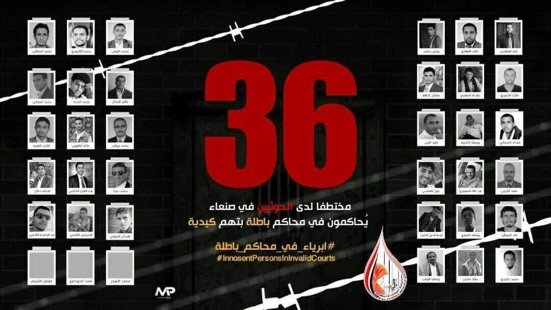 وطالبت المنظمة المجتمع الدولي والمبعوث الخاص للأمين العام للأمم المتحدة، بالضغط على الحوثيين بشكل عاجل للإفراج عن جميع المعتقلين تعسفيا دون قيد أو شرط، ووقف جميع المحاكمات المنعدمة، وتحدثت عن مخالفات جسيمة أثناء جلسات المحاكمة، تمثلت في انتهاك أبسط القواعد القضائية الضامنة لنزاهة المحاكمة، وحق المتهمين في الدفاع عن أنفسهم، وتهديد واعتقال محاميهم داخل جلسات المحكمة ورفض تسجيل طلباتهم فضلا عن الاستجابة لها، وتعذيب المتهمين خلال فترة المحاكمة بل وفي القاعات المجاورة لقاعة المحكمة وأثناء انعقاد الجلسات.