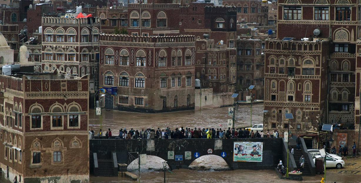 ضربت الأمطار الغزيرة، مؤخراً صنعاء القديمة، ولكونها من الطين، فقد تضررت كثيراً، إذ حاصرت السيول أكثر من 100 منزل، وتقول تقارير إحصائية إن نحو ألف منزل تدمروا كلياً أو جزئياً، وقد يزداد عدد المباني المهددة بالسقوط إذا استمر هطول الأمطار بتلك الغزارة التي شهدتها المدينة في أغسطس والأشهر الماضية.